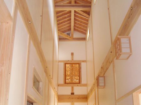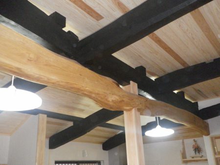 高いお金を払って高級品を買うのではなく、地元の杉や檜を、梁(はり)や柱としてそのまま見せる「現し(あらわし)」仕上げに。